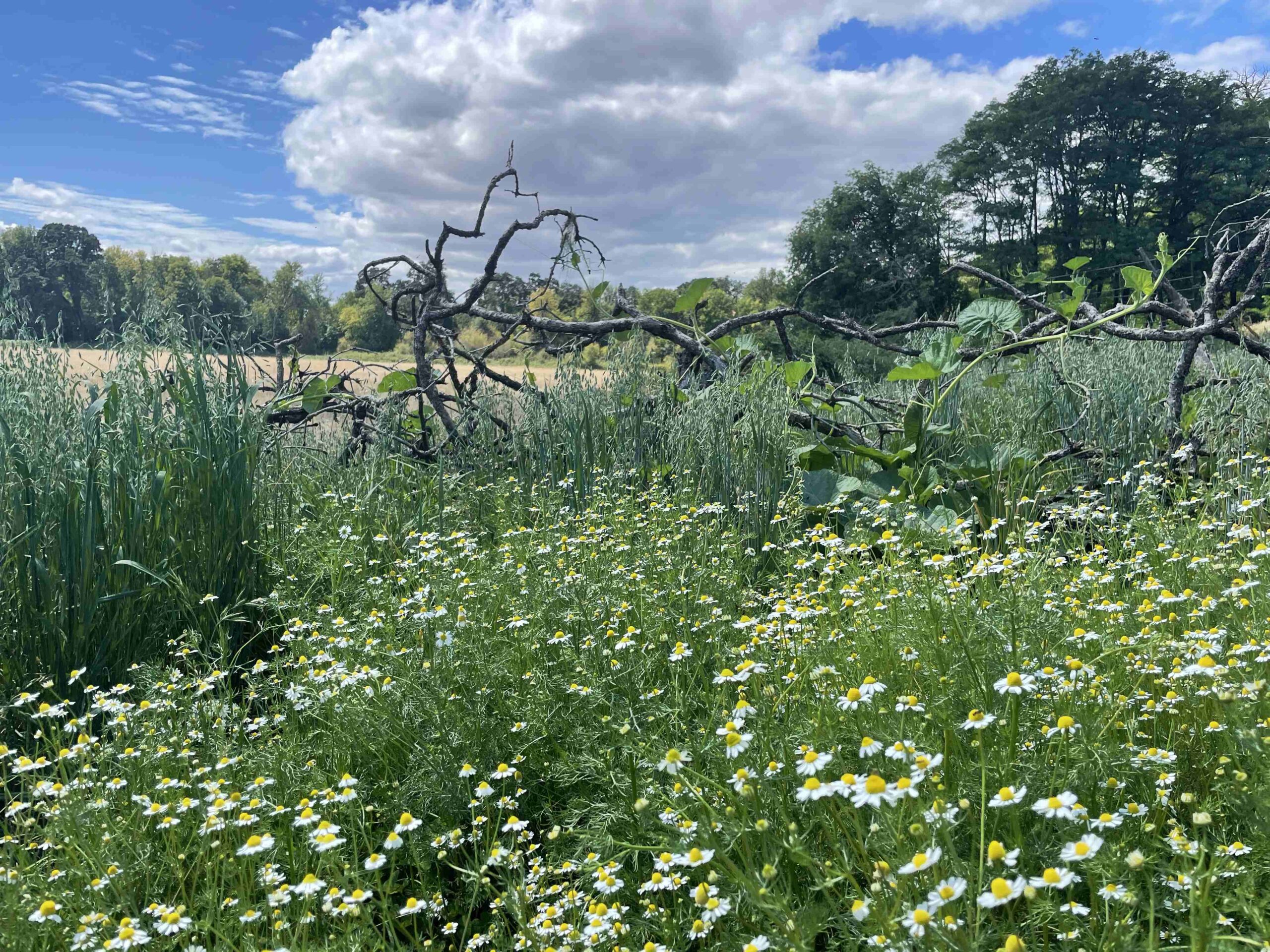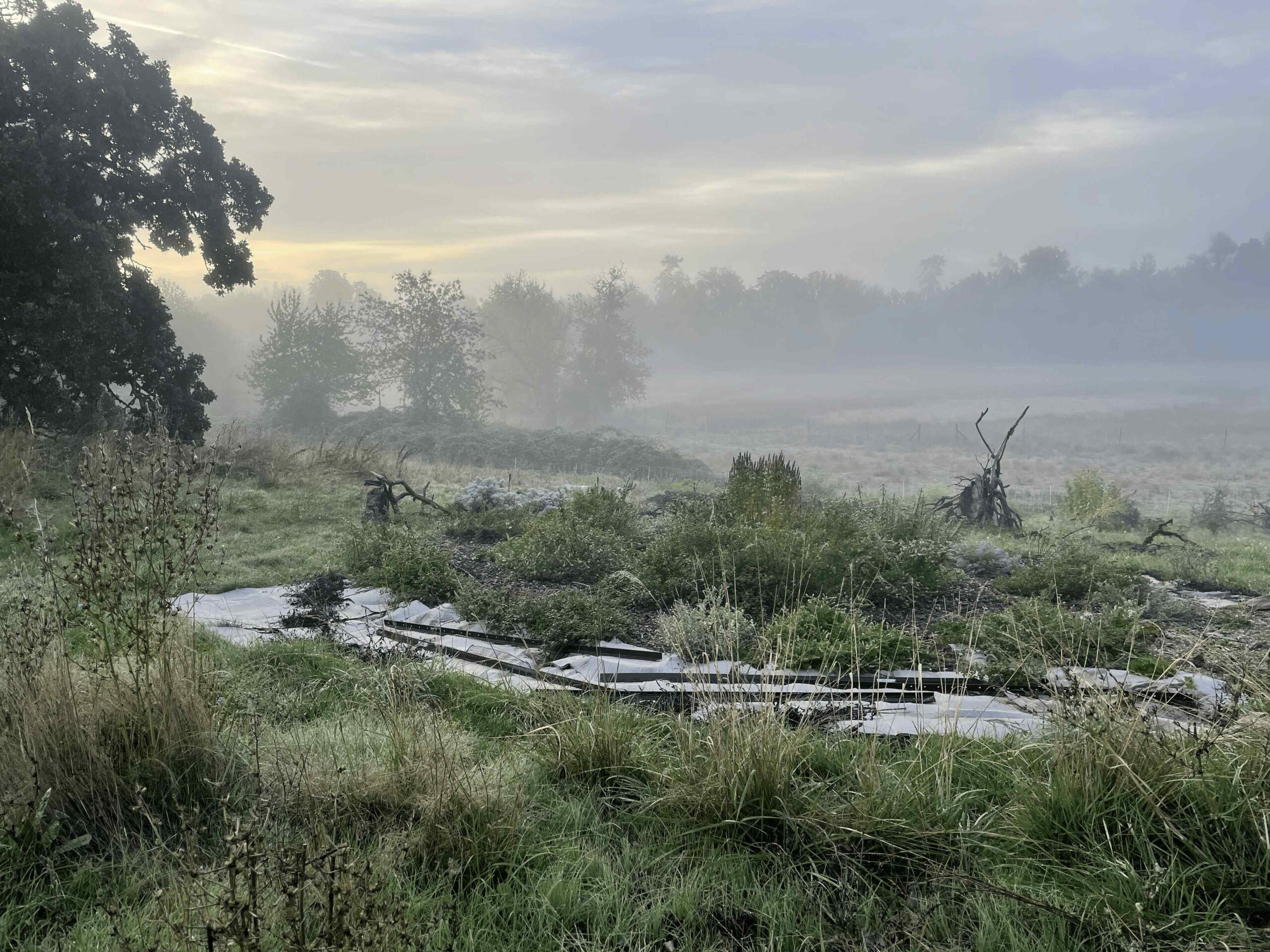 The natural slope of the land is intentionally used to support flood irrigation, and we have created three wildlife ponds that also serve as a water source for irrigation. Together, these practices support carbon sequestration, water retention, and a more resilient ecosystem over time.